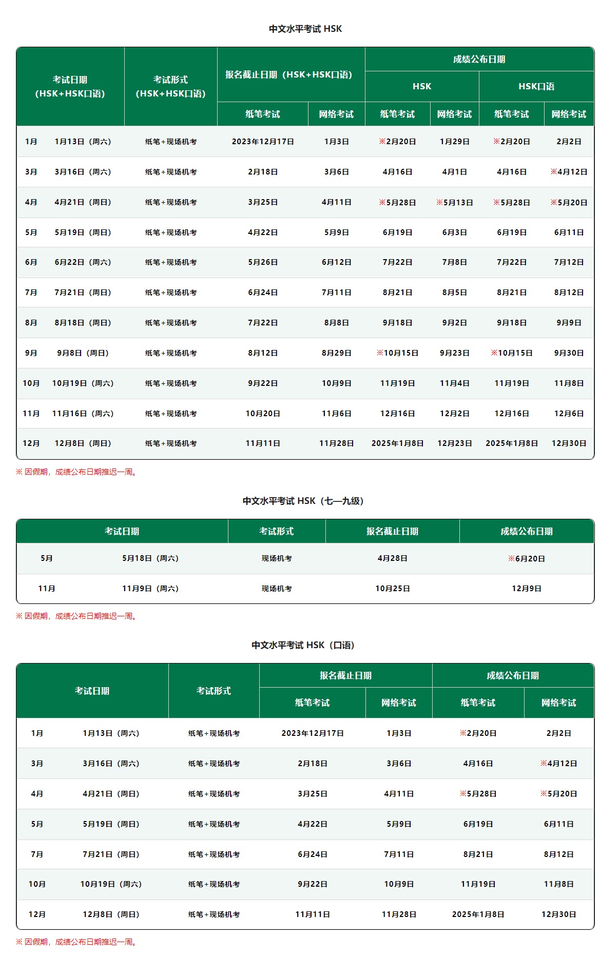 2024年HSK試験スケジュール